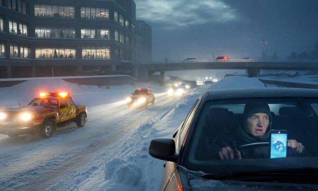 The quiet cul-de-sac is anything but peaceful on this chilly February morning. As the sun peeks over the rooftops, a
