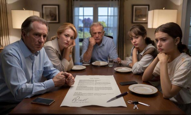 The family dinner descended into an unexpected silence as the eldest daughter’s words hung in the air. “Wait… this can’t be right. Dad split everything equally between the three of us?” Her fork hovered above the mashed potatoes, a look of confusion etched on her face.
